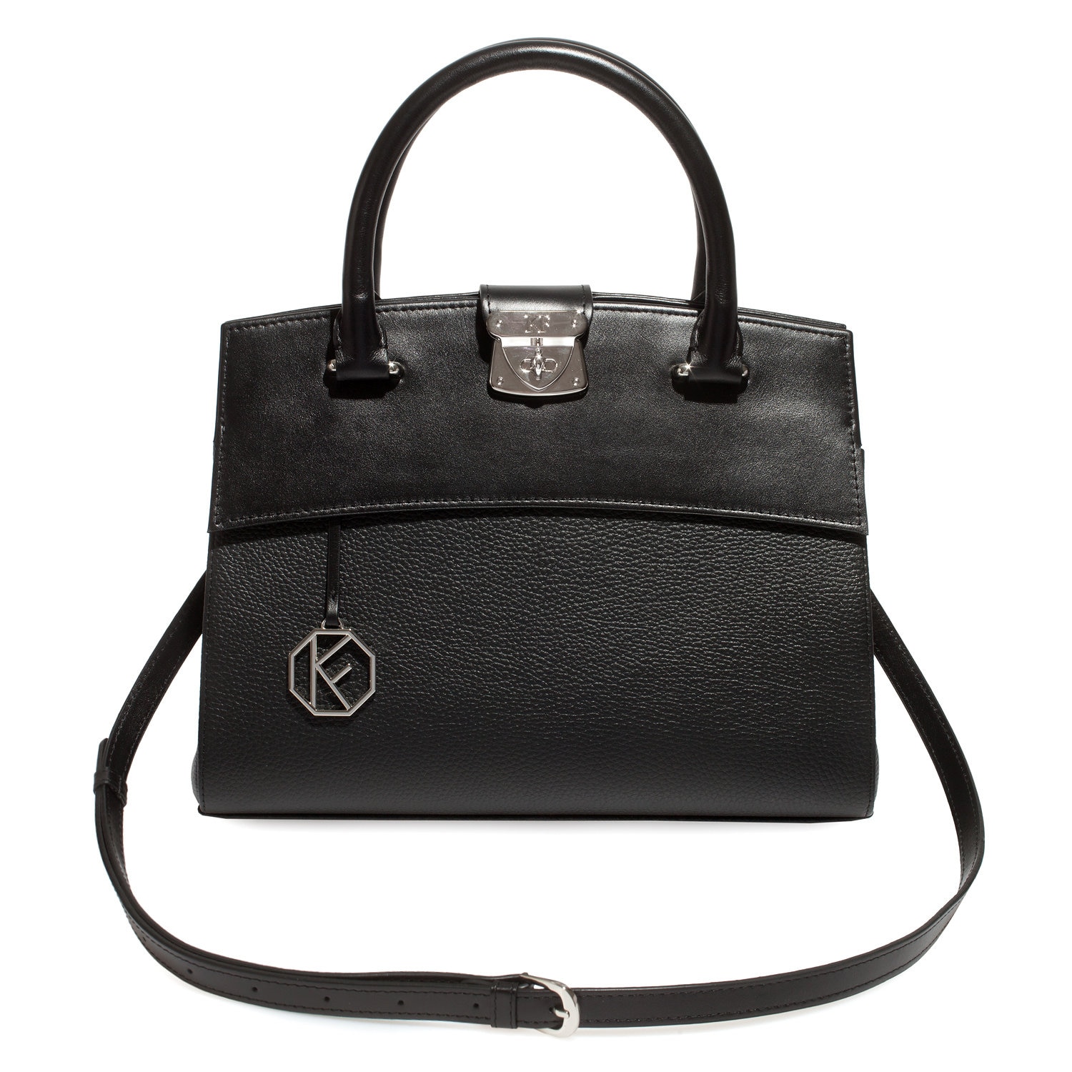 Leather Top Handle Bag, Black Leather Handbag Top Handle, Women's Leather Bag KF-4925