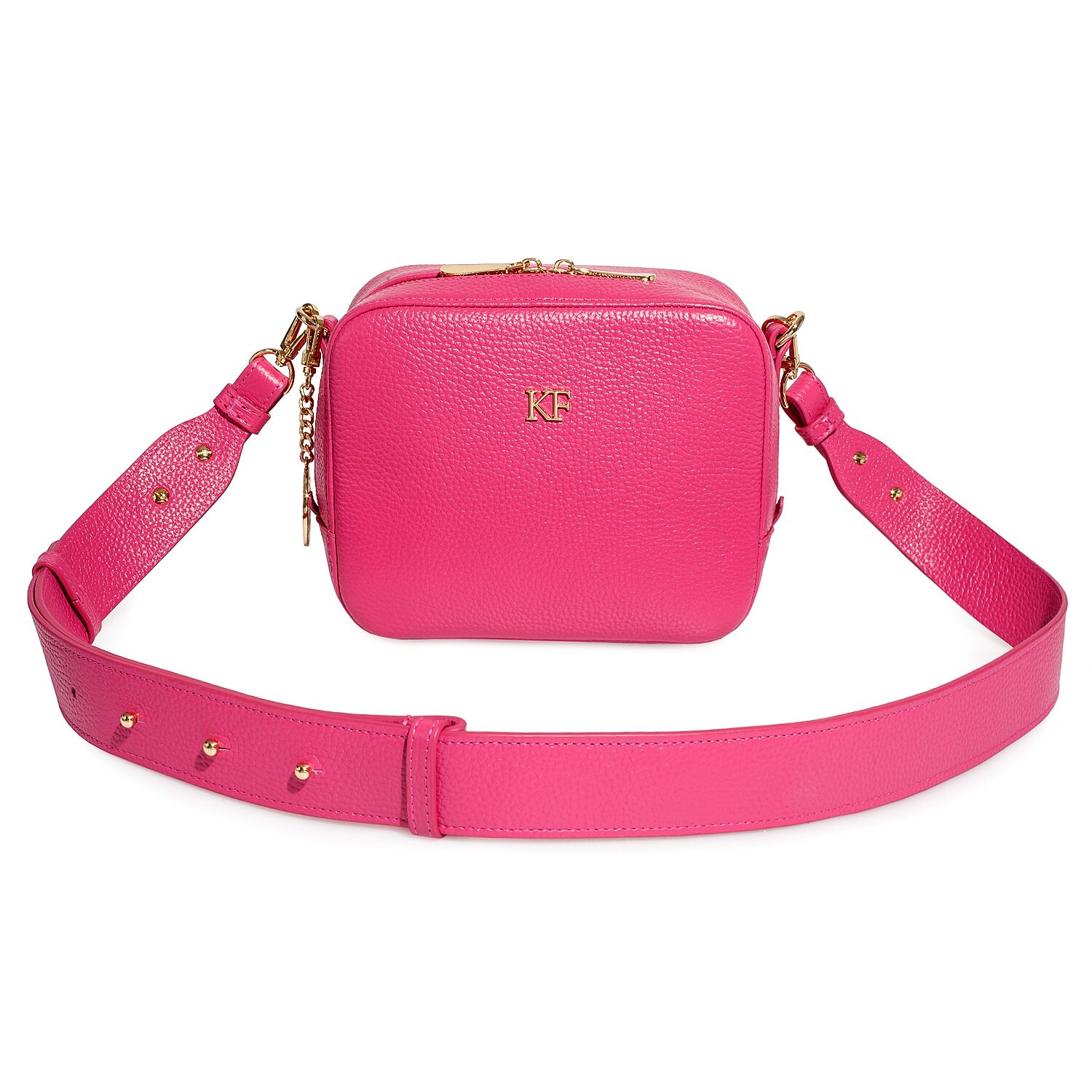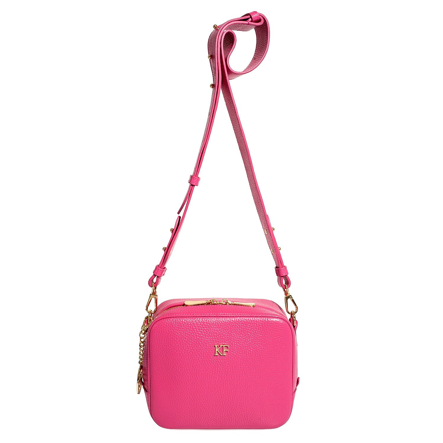 Pink genuine leather woman shoulder bag from ukrainian designer Katerina Fox. Fashionable and elegant modern bag KF for bright girls and women. This bag is able to attract attention and highlight your exquisite taste. The internal space of a bag is equipped with one spacious compartment and one zipper pocket. The bag is closed with a zipper. The length of the strap is adjustable. The kit also includes a storage bag.