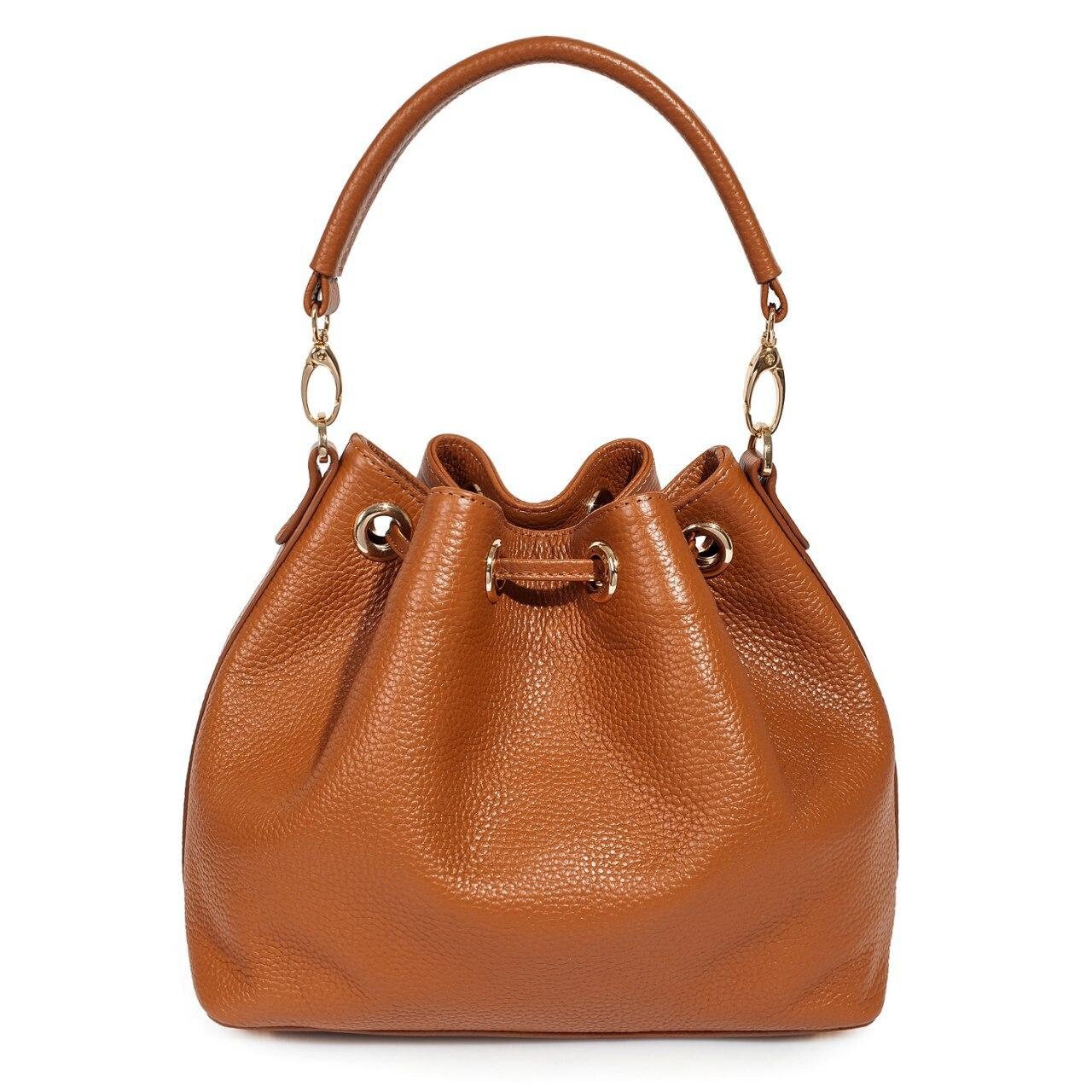 Ginger genuine leather handbag from ukrainian designer Katerina Fox. The advantages of this model is stylish design and excellent leather, from which it is made. All accessories for Katerina Fox bags makes the same factory as for Michael §¬ors, Calvin Klein, DKNY and other famous brands.The internal space of a bag is equipped with one spacious compartment and two patch-pockets and one zipper pocket. The bag is pulled together with a leather lace. The bottom of the bag is protected with metal legs. There is a long handle that allows you to wear the bag on the shoulder. The kit also includes a storage bag.
