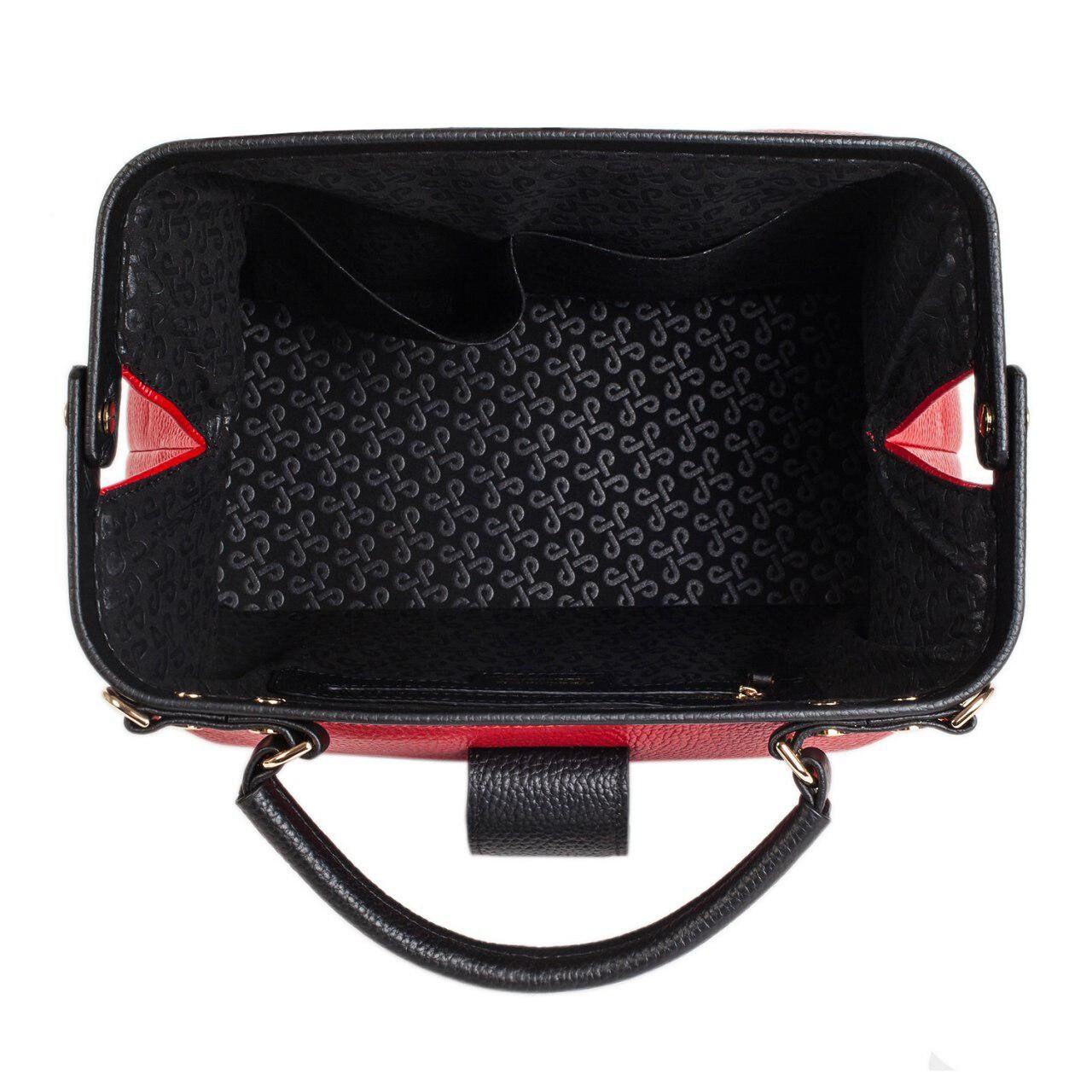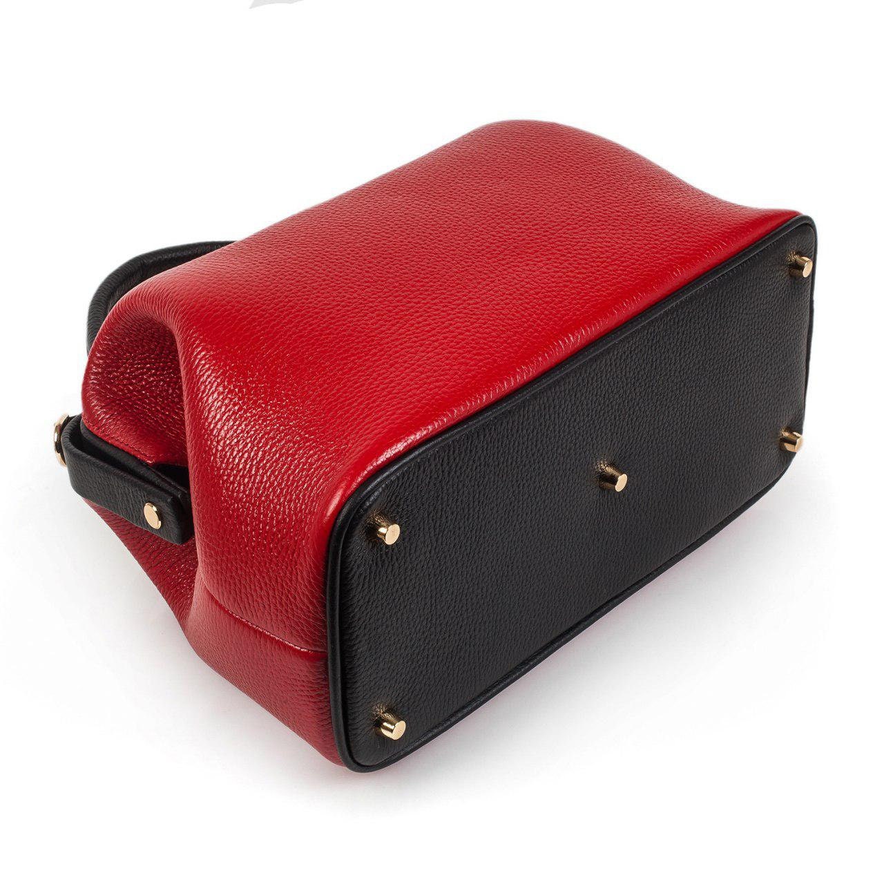 Red genuine leather handbag from ukrainian designer Katerina Fox. This model is designed for women who appreciate the sleek design combined with functionality and comfort. High-quality and reliable hardware ensure long service bags. The internal space of a bag is equipped with one spacious compartment and two patch-pockets and one zipper pocket. The bag is closed with a clasp. The bottom of the bag is protected with metal legs. There is a long handle that allows you to wear the bag on the shoulder. The kit also includes a storage bag.