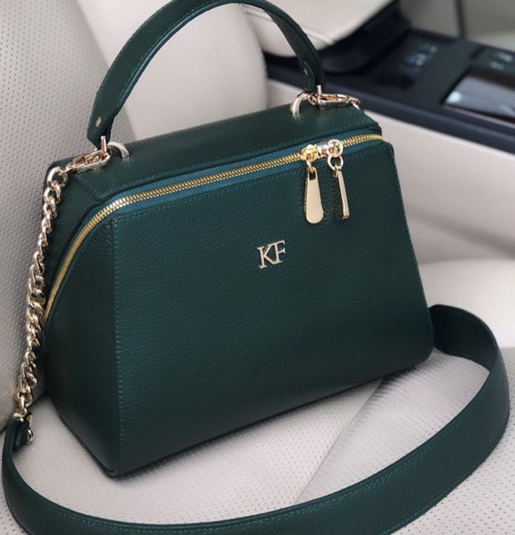Leather Top Handle Bag, Green Leather Handbag Top Handle, Women's Leather Bag KF-3159