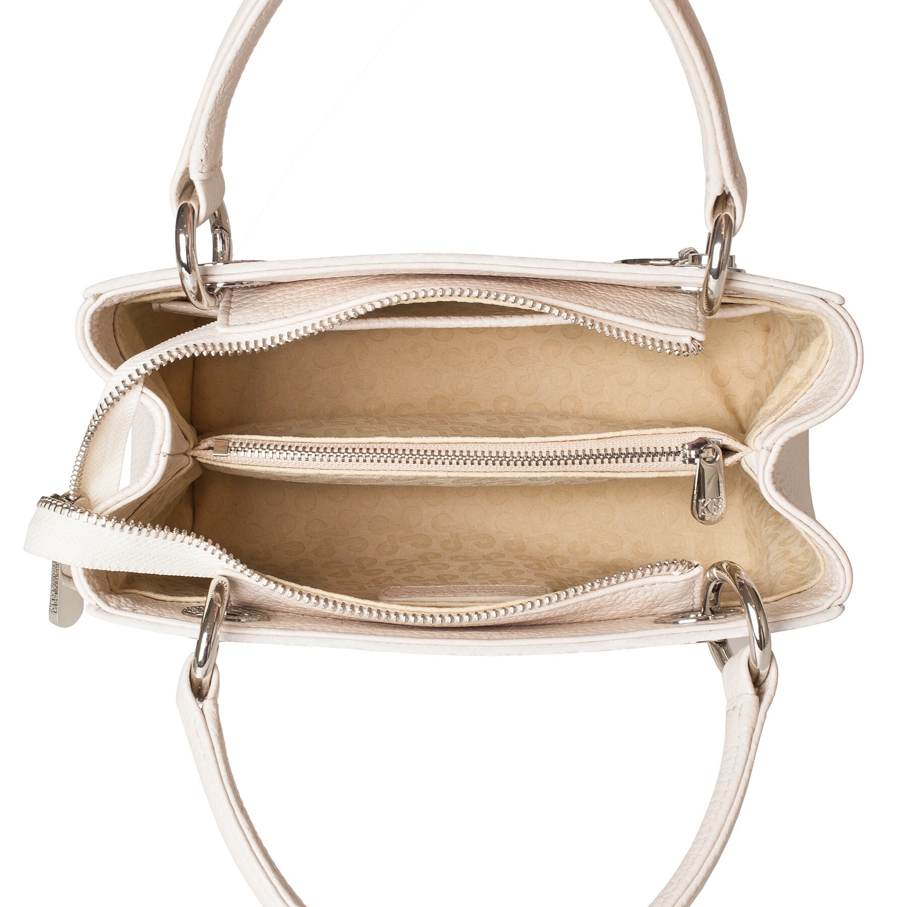 Delivery: In most cases, our goods are shipped by FedEx or Ups Express. On rare occasions, the goods might be shipped by Ukrposhta. The clients should check in advance an estimate of the amount of customs duty and value added tax. Light beige genuine leather handbag with snake print from Ukrainian designer Katerina Fox. This model is designed for women who appreciate the sleek design combined with functionality and comfort. High-quality and reliable hardware ensure long service bags. Inside the bag are three spacious compartments, one with zip, two patch pockets and one zippered pocket closes with a zipper. The bottom of the bag protected by metal feet.